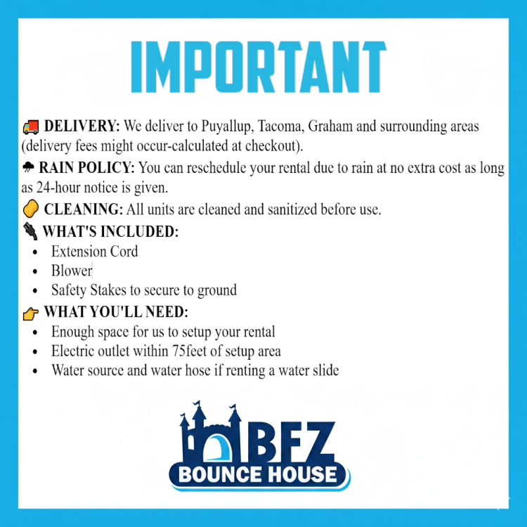 - RAIN POLICY: You can reschedule your rental due to rain at no extra cost as long as 24 hour notice is given.